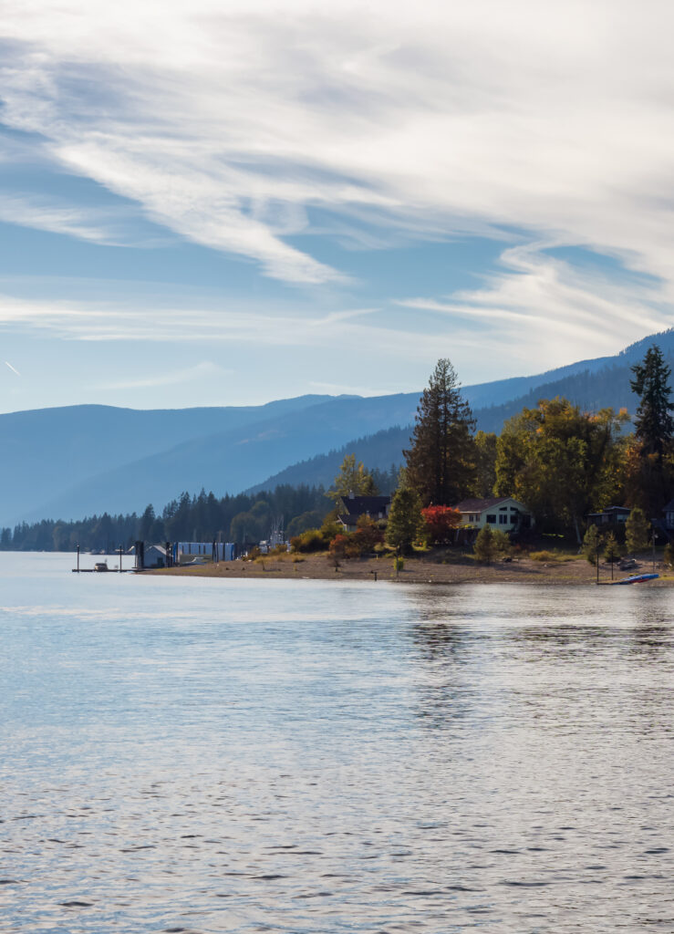 The Village of Chase is nestled between the shores of Little Shuswap Lake and the South Thompson River Valley. Chase Creek, which drops over three small waterfalls before flowing through the town, enters the South Thompson River just below the lake’s outlet.